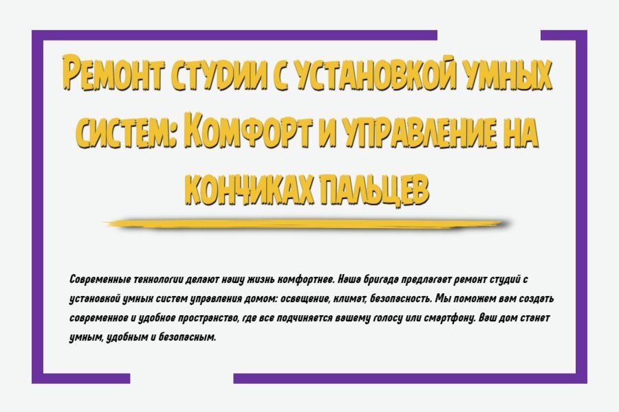 Умные системы превращают вашу студию в современное пространство, где комфорт, безопасность и удобство управления интегрированы в каждую деталь интерьера. Технологии позволяют автоматизировать множество задач, от освещения и отопления до безопасности и развлечений, обеспечивая вам полный контроль прямо с вашего смартфона. Рассмотрим, как провести ремонт студии с установкой умных систем, чтобы создать максимально комфортное и функциональное пространство.